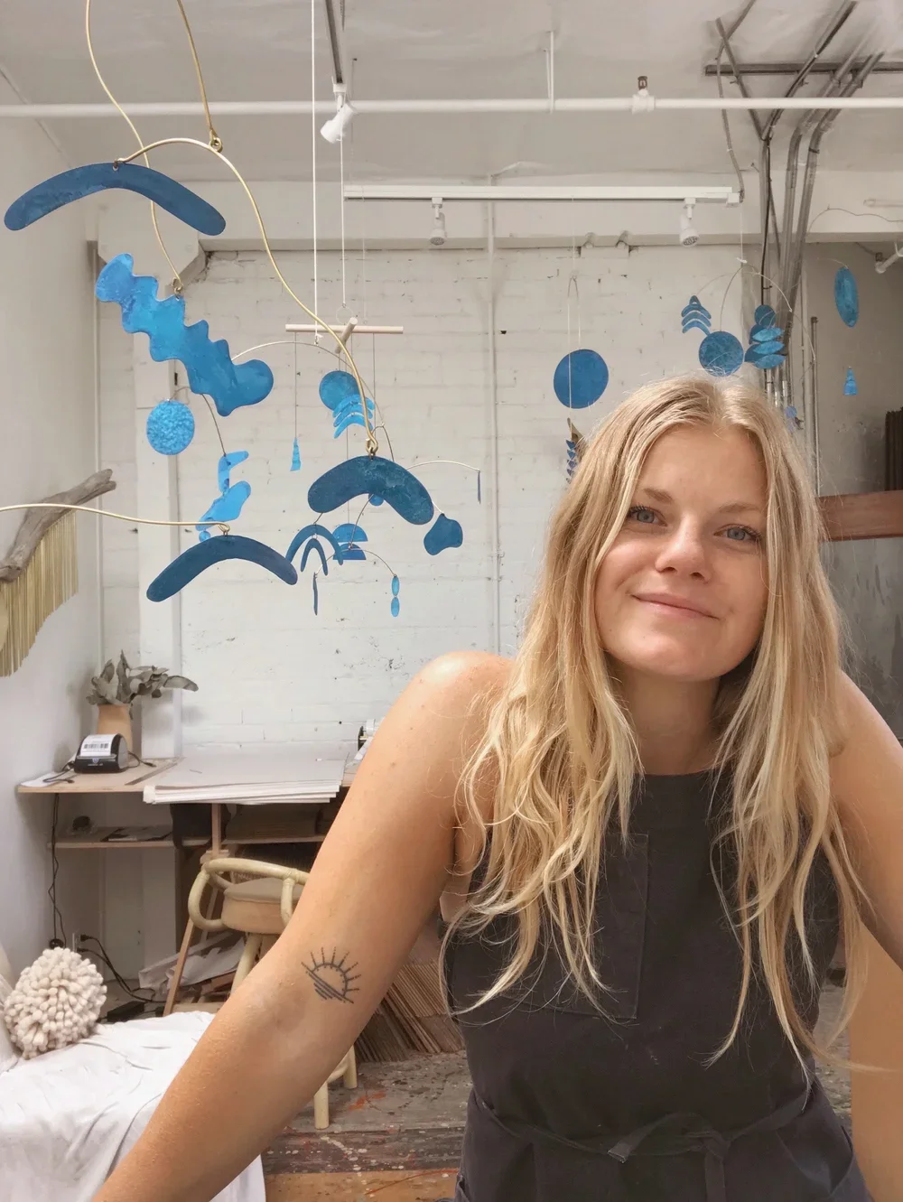 Northern California-based metal artist, Sarah Perez, creates driftwood and metal sculptures, mobiles/ kinetic pieces, verdigris patina wall hangings, and light catchers made from metal sheet, wood, tubing, and driftwood. With training in sculpture and small metals, Perez has taken what she learned and made it her own; manipulating wire, cutting out shapes, filing, sanding and stringing them together until she lands on something. She is fascinated with balance & composition and can often be found on the studio floor getting lost in the shifting of pieces until she lands on something of beauty and simplicity.